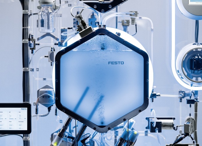 The cultivation reactor of the BionicHydrogenBattery from Festo