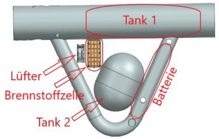 As part of the project, the system comprising the battery and fuel cell range extender was set up as a lab prototype. For this purpose, a proton exchange membrane or PEM fuel cell system from Hydrogen Air Technologies was used (see fig. 3).