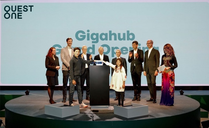 The approximately 800 guests applauded loudly. In general, when the “Gigahub” was officially put into operation, there was no shortage of buzzwords and emotion. Across the screen flickered images of parched soils, raging floods, burning forests, followed by an hourglass – and the shiny, metallic, donut-shaped logo of Quest One. The project is “part of something really big,” said von Plettenberg.