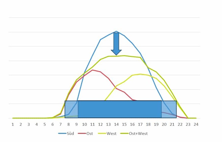 In order to smooth out the solar harvest from the roof already during production, the majority of the photovoltaic modules with 27.4 kilowatts were installed as a roof-integrated solution facing east-west. In addition, seven modules with a total of 2.4 kilowatts are located on the balcony railing facing to the south. Both together reduce the PV midday peak by 30 percent (see Fig. 2) - and therefore extend the runtime of the electrolyser by four hours per day in summer. "This increases the hydrogen yield by as much as 40 percent," says Daniel Wolf from HPS. The engineer is the network coordinator of this innovative project.
