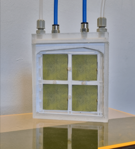 There are currently various prototypes that show that photocatalysis works with the test material. “At the moment, we are mainly working on improving the material properties,” states cofounder and managing director Dr. Christopher Höfener. For a pilot plant, the electrodes that are currently produced on a laboratory scale still need to be produced in larger quantities. “We are now working on scaling up the manufacturing processes for the electrodes,” says the physicist and mechanical engineer.