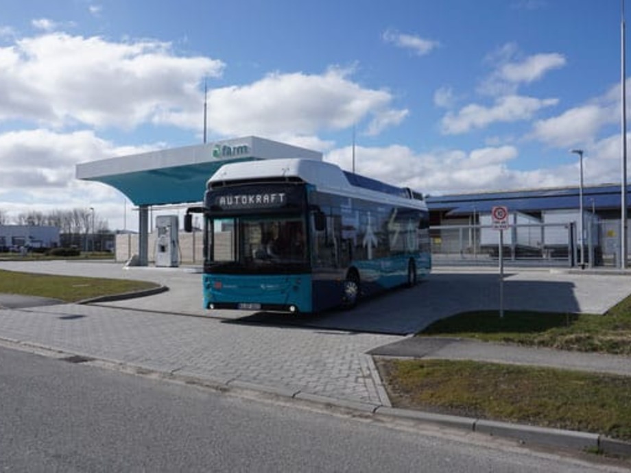 The efficiency of the electrolyzers in Bosbüll lies at up to 95 percent. The reason for this is, among other things, that the waste heat from H2 production of around 100 MWhtherm is directed into the heating grid or temporary thermal energy storage. After its production, the green hydrogen is transported to two H2 refueling stations, in Niebüll and in Husum. A compressor provides the required refueling pressures of 350 bar for buses and other commercial vehicles with 350-bar tanks, and 700 bar for passenger cars and light commercial vehicles.