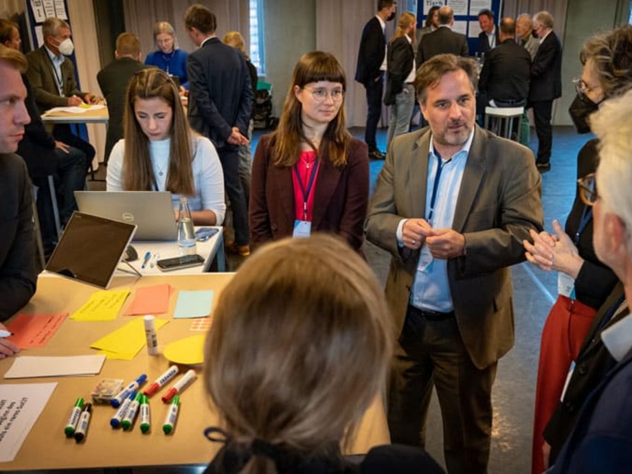 Image: World café “Priorisierung von Wasserstoff-Anwendungen” (prioritizing the uses of hydrogen) during the conference Wasserstoff-Dialog