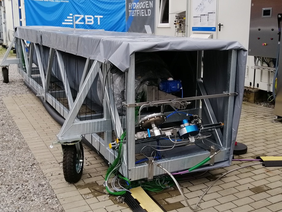 A recirculation system was installed in the hydrogen testing area so that hydrogen consumption could be kept as low as possible during the investigations. Thanks to this system, most of the hydrogen could be returned following each test to its original storage vessel in the testing area and thereby avoid unnecessarily high emissions of hydrogen into the atmosphere.
