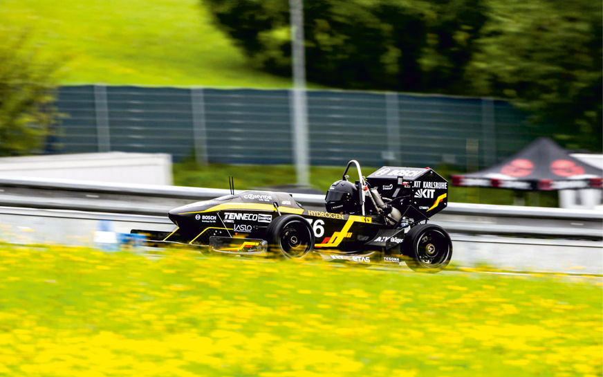 “Two years ago, we started the H2 Concept Challenge to prepare Formula Student teams for the new H2 project and to develop a new set of rules,” explains Steffen Schmitt, Head of Hydrogen Formula Student Austria (FSA). The HyDriven Twente team competed with a fuel cell. As the second H2 team, Ka-RaceIng from Karlsruhe converted an existing race car from E85 to hydrogen.
