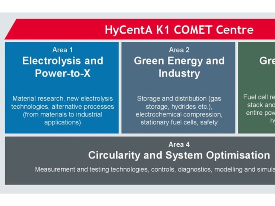The work conducted by the 80-member team at HyCentA is divided into four areas. The goal is to lower the cost of technologies, reduce degradation and raise the efficiency of electrochemical cells. In addition, the intention is to identify the ideal combination of key technologies and optimization potential by coupling the energy, industry and mobility sectors. Ultimately, it is hoped that this will enable a higher degree of self-sufficiency in renewables, increase the resilience of the energy system and safeguard international competitiveness through in-country value creation. A total of around 40 leading national and international businesses and academic partners are contributing to the research alongside HyCentA as part of the COMET program’s work on hydrogen technologies.