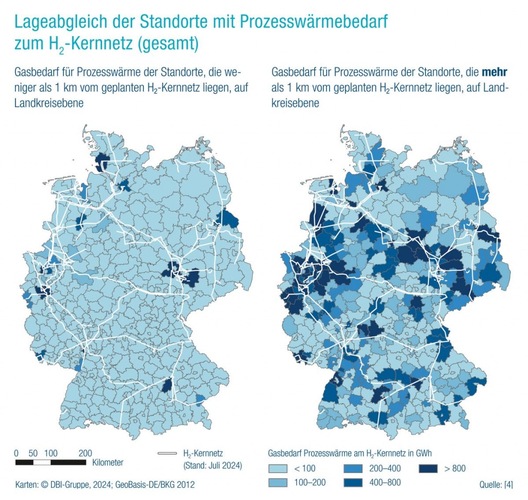 A study commissioned by the DVGW (German Technical and Scientific Association for Gas and Water) analyzed the supply situation at over 5,600 industrial sites. The result shows the importance of the distribution network: 27 percent of the sites surveyed are less than one kilometer away from the planned H2 core network and could be supplied directly via it. However, 78 percent of the gas demand for process heat will arise at a distance of more than one kilometer from this network. A hydrogen-capable distribution network is therefore required to supply these locations. "In order to accelerate the hydrogen ramp-up in Germany, the expansion of hydrogen infrastructures must focus more on the distribution grids. They are of particular importance," says DVGW head Linke, summing up the situation.