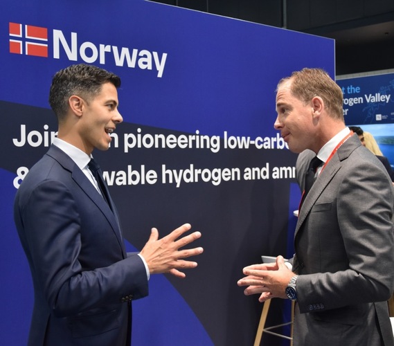 Among the trade fair visitors was also the Dutch energy minister Rob Jetten (left), here at the Norway stand in conversation with Maurice Adriaensen, director at DNV Energy Systems