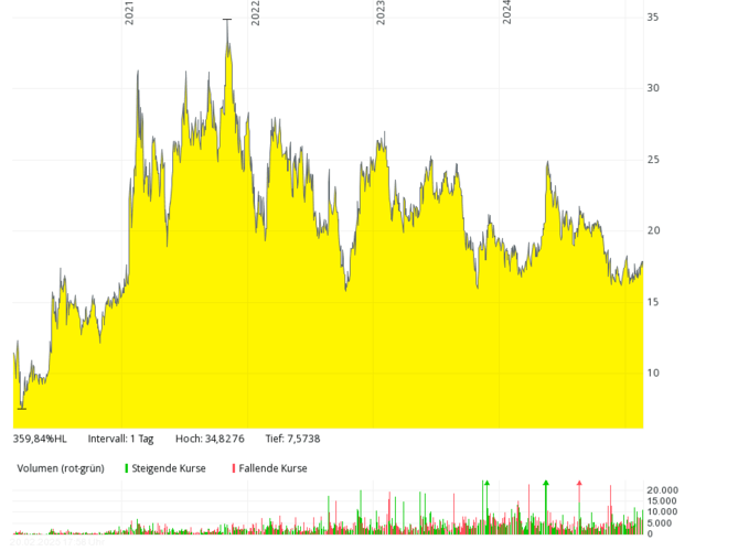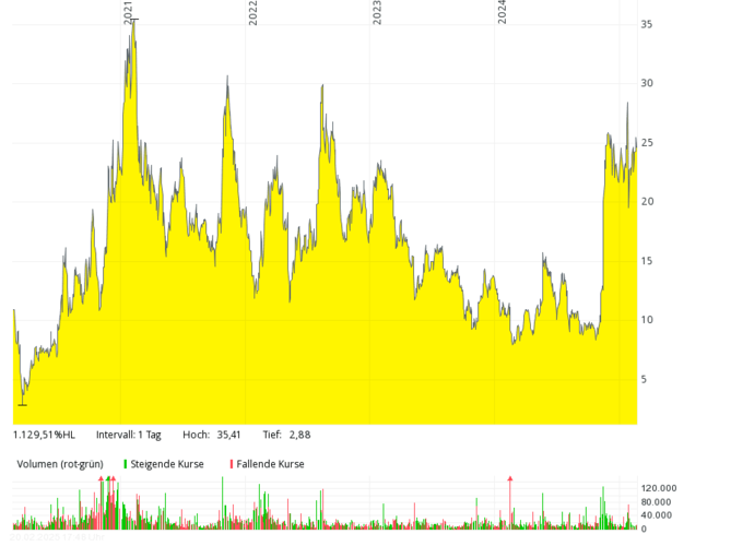 The US company is one of the world's largest buyers of liquid hydrogen, but after the takeover of United Hydrogen (2021) it also produces it itself. At the beginning of 2025, the US energy ministry (DOE) via the Loan Programs Office (LPO) and in accordance with the Justice40 initiative of the Biden Administration gave the green light for the requested loan guarantee of USD 1.66 billion. This is intended to finance the development, construction and ownership of up to six systems for the production of green hydrogen. A sign of hope after reducing the sales forecast for 2025 from USD 1.5 billion to 850 to 950 million at the end of 2024.