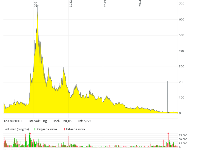 A tragedy is the share of the US company named after Nikola Tesla based in Phoenix, Arizona. Already at the presentation of the first "hydrogen-powered" truck, it turned out that the advertising video was a fake (a moving Nikola truck was shown that was not operated with hydrogen). There are collaborations with German companies and with the Norwegian Nel (for a hydrogen refueling station network in the USA). After a hype with share prices of over USD 80 (split-adjusted would have been around USD 2,000) and judicial convictions of the first CEO, the stock is now a penny stock. The stock market value has shrunk from at one time tens of billions to around USD 50 million, which is not surprising: In 2023, a record loss of over USD 864 million at not even USD 36 million turnover.