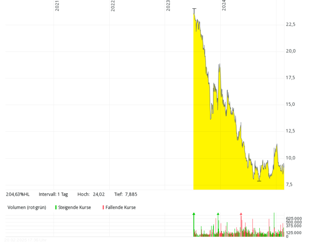 Other companies, such as the Danish Nel spin-off Everfuel A/S, which has been listed since October 2020 and whose shares were last traded at the end of 2024, were taken over. In 2023, Everfuel increased sales by 128 percent to around 5.7 million euros with around 75 employees, but the loss of almost EUR 16 million also rose to around EUR 28 million. The share price on the home exchange Oslo sank from over NOK 183 (early 2021) until May 2024 to under NOK 11 (which corresponded to a stock market value of almost 80 million euros).
