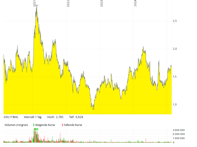 This vehicle technology group, founded in 1953, was called Weichai Diesel Engine Factory until 1992 and still produces diesel engines in China today. With participations such as that of Ballard Power and Ceres Power, they now also deal in the production of fuel cell products or hydrogen applications. The share prices of the H2 stocks also listed on German stock exchanges swung between 0.93 and 2.78 euros in recent years, most recently at around 1.70 euros.