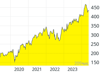 Fig. 1: 5-year share price development of Linde plc