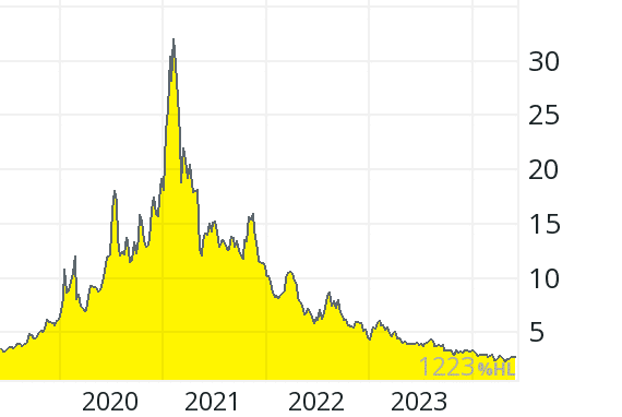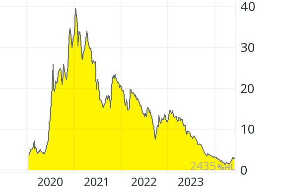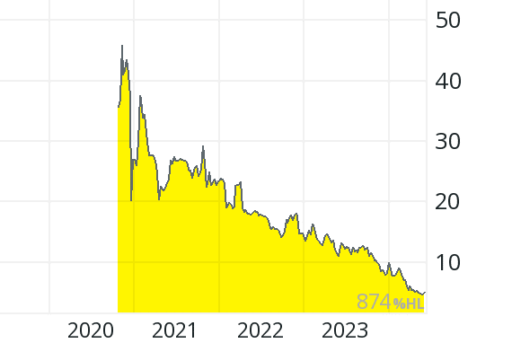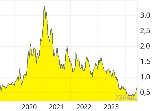 The price fell by over 95 percent from over 50 pence (beginning of 2021) to around 2 pence (end of May 2024), so that the market value of around 33 million pounds corresponds to approximately 17 times last year’s turnover.