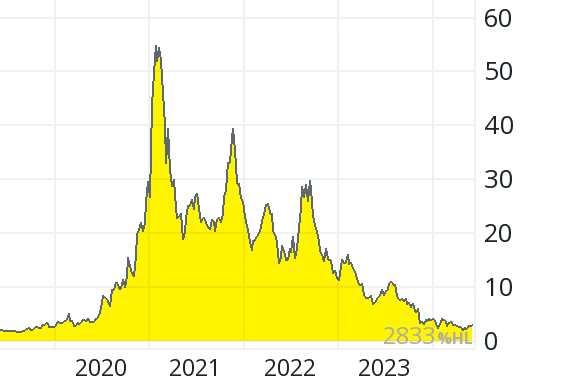 In fiscal year 2022/23 (status April 30, 2023), turnover fell by seven percent to 5.2 million GBP; the loss more than doubled to over 101 million GBP. The equity ratio fell from over 86 percent to under 74 percent. The price fell by 92 percent from 7.17 GBP (beginning of 2021) to below 0.58 (May 2024), which corresponds to a market value of over 350 million GBP– so around 30 times the sales of the last four quarters.