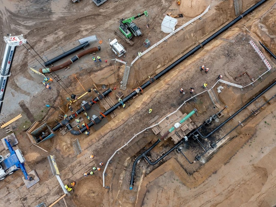 Construction work on the first core network section, the GET H2 Nukleus project, is also underway in the Ruhr region. The overall system with many partners involved is scheduled to go into operation as early as mid-2025. It includes a large electrolyzer (RWE), a conversion of existing pipelines (Nowega and OGE) and a partially new pipeline route (Nowega, Evonik). Construction of several pipelines has already begun in 2023.