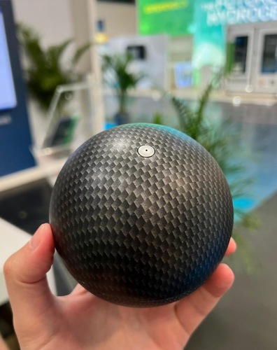 Korn: As it stands, the storage of hydrogen in conventional compressed gas tanks is complex and expensive. There is a trade-off between performance, safety and cost. We have a surprising solution to this: Instead of using a small number of large cylindrical tanks, our technology allows us to store the same amount of hydrogen in multiple spherical carbon-fiber vessels the size of a tennis ball. The silicon microvalve system, which is built into every pressurized ball, means that all the vessels act identically and in unison, just like a large tank. The expense involved in ensuring the safety of hydrogen stores can be significantly reduced if the energy is split into multiple small vessels. As a result, we save almost half the carbon fiber material compared with a standard pressurized tank. We call these ball-shaped high-pressure storage vessels Sfeers.