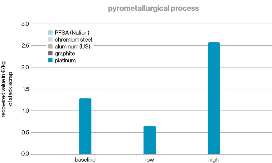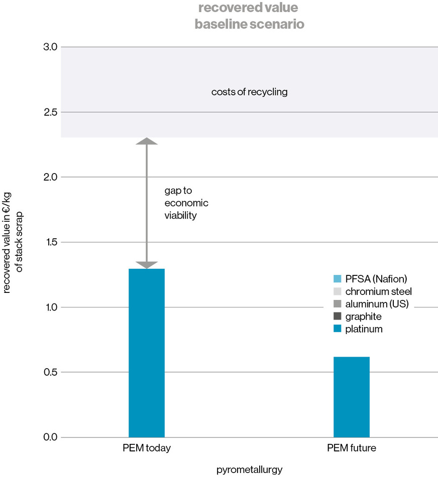 Before drawing conclusions, further factors affecting economic viability must be considered. The use of hydrometallurgical methods can enable the recovery of additional value. For example, several projects in Europe are actively working on the recovery of ionomers, and the Horizon funding program includes a dedicated topic area for this.
