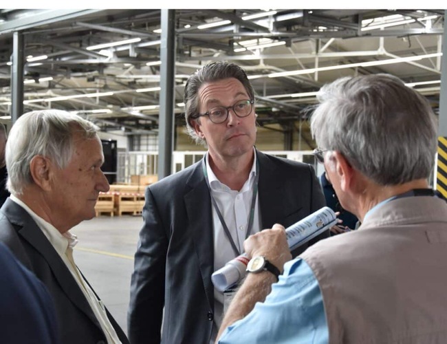 Fig. 3: Alongside company owner Martin Volke (left), the former German transportation minister Andreas Scheuer was among the guests of honor – here in conversation with Rainer Albrecht, the founding shareholder of FES in 1992 (right)